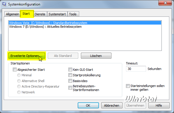 Unter der Registerkarte „Start“ – Button „Erweiterte Optionen…“ – Maximaler Speicher muss nun das Häkchen entfernt werden (falls nicht schon entfernt).
