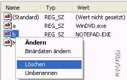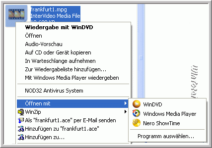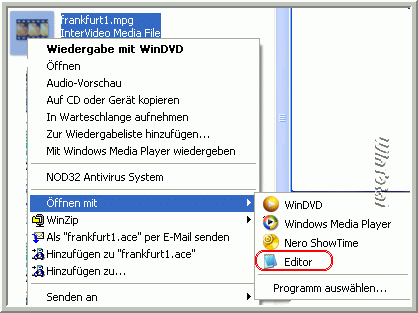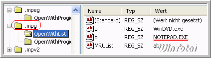 In diesem Beispiel ist ein Video (.mpg) falsch verknüpft und zwar mit dem Editor (notepad.exe). Der Eintrag stört und soll entfernt werden.