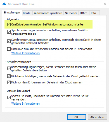 Deaktivieren Sie dort „OneDrive beim Anmelden von Windows automatisch starten“.