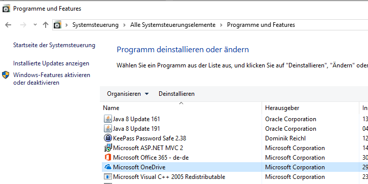 In Windows 7 müssen Sie OneDrive dagegen über die Systemsteuerung unter „Programme und Features“ deinstallieren.