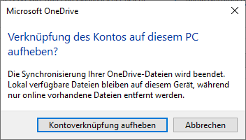 Wenn Sie die Verknüpfung aufheben, wird eine Synchronisierung mit dem PC beendet und die online verfügbaren Dateien werden entfernt. Die Dateien bleiben dann nur lokal vorhanden.