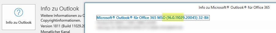 Die Versionsnummer im Registry-Pfad muss noch angepasst werden (Outlook 2010 = 14, Outlook 2013 = 15, Outlook 2016 = 16). Die Outlook -Version finden Sie auch unter „Office-Konto“ -> Infos zu Outlook ganz oben in der Produktbezeichnung.
