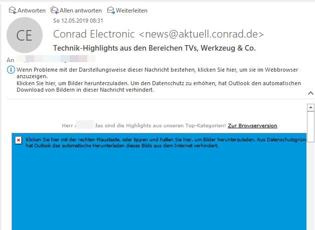 - 1. Aus diesem Grund sperrt Microsoft Outlook das automatische Herunterladen von Bildern in Mails