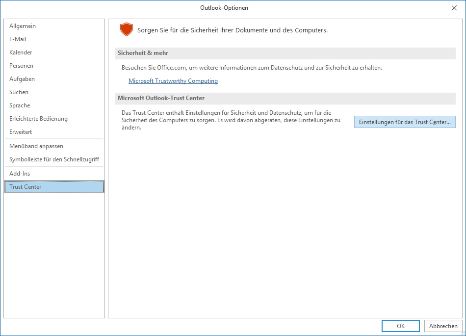 Als letzten Punkt können Sie den Schutz von Outlook auch komplett aufheben und erreichen, dass Outlook Bilder aus Mails automatisch anzeigt und speichert.