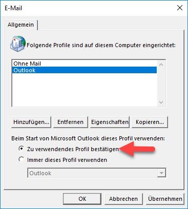 Unter „Profile anzeigen“ können Sie dann festlegen, ob ein bestimmtes Profil immer gestartet werden oder vor dem Start eine Auswahl des Profils erfolgen soll.