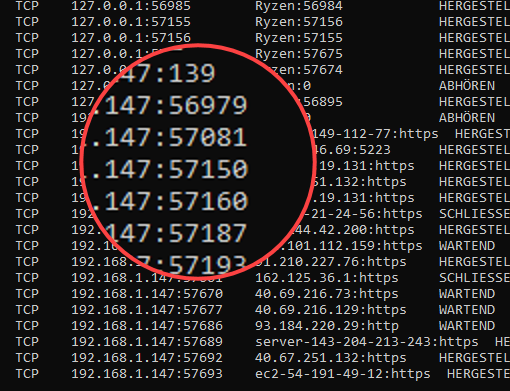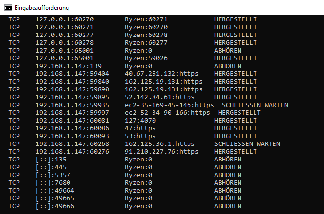 Die Anfrage auf dem Port 443 ordnet der Server demnach dem Webserver für HTTPS zu. Durch die offenen Ports ist der Server in der Lage, auf Anfragen von außen zu reagieren. Solche Ports, welche Windows mit dem Status „Abhören“ kennzeichnet, werden offene Ports genannt und können mit dem Netstat-Befehl unter Windows angezeigt werden.