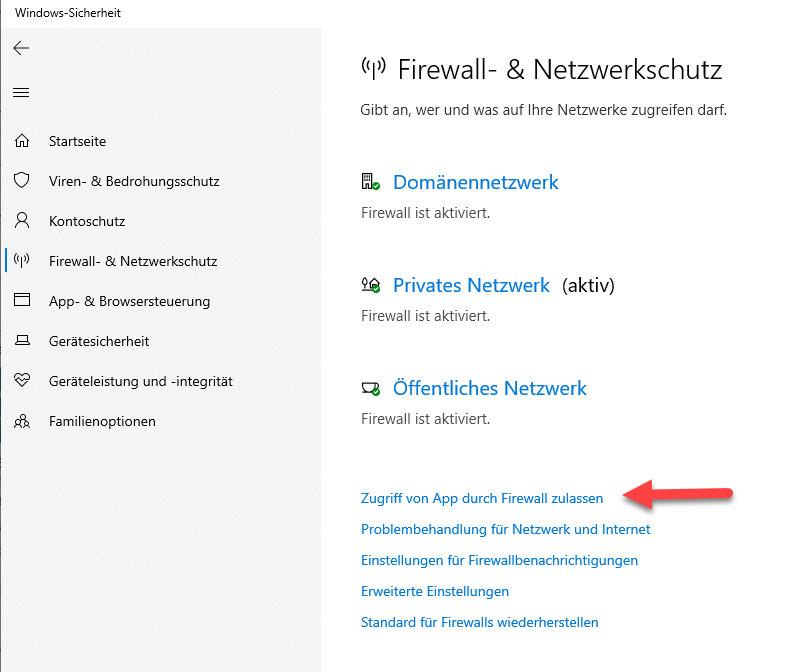 Die Windows-Firewall als Teil der Windows-Sicherheit in Windows 10 verhindert aus Sicherheitsgründen zunächst, dass Ports nach außen freigeben und damit „geöffnet“ werden. Ausnahme sind absolut notwendige Dienste, wie beispielsweise NetBIOS auf Port 137 bis 139.
