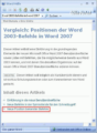 Wenn Sie in der Hilfe von Word 2007 den Suchbegriff „Positionen der alten Word 2003-Befehle in Word 2007“ eingeben, dann finden Sie einen entsprechenden Hilfeeintrag. Wenn Sie im Text ein wenig nach unten scrollen, finden Sie den Eintrag Zuordnungen für die Word-Multifunktionsleiste (Übersicht).