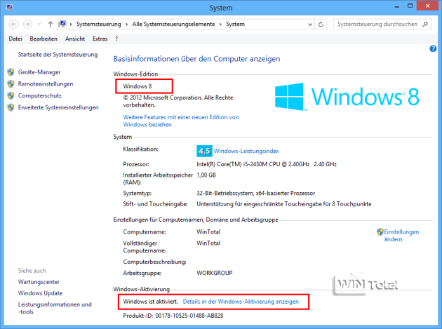WinTotal Tipparchiv: „Von vorinstalliertem Windows 8.0 auf Windows 8.0 Pro upgraden“