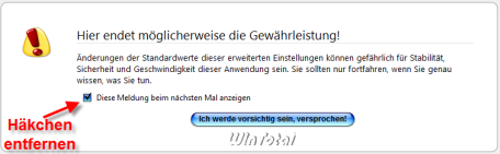 Der Defaultwert ist hier 10000 (10 Sekunden) und wird nach einem Doppelklick auf Wert einfach erhöht auf 60000 (1 Minute) oder 600000 (10 Minuten).