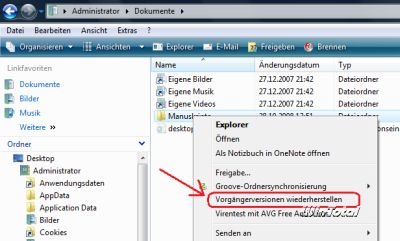 Windows Vista legt in regelmäßigen Abständen Dateibackups als sogenannte Wiederherstellungspunkte an, damit Sie ältere Versionen von Dateien oder ganze Ordner wiederherstellen können. Doch nur in den Windows Vista-Editionen Ultimate, Business und Enterprise finden Sie im Windows Explorer den Menüpunkt „Vorgängerversionen wiederherstellen“, wenn Sie eine Datei oder einen Ordner mit der rechten Maustaste anklicken.
