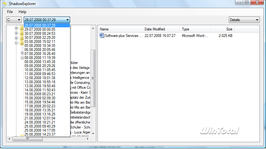 Mit der Freeware Shadow Explorer, können Sie auch in der Home Edition von Windows Vista Vorgängerversionen von Ordnern und Dateien gezielt wiederherstellen.