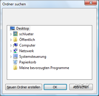 Ein neues Fenster öffnet sich, in dem Sie den Ordner auswählen oder neu erstellen können, in dem die Schattenkopie gespeichert werden soll.