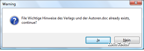 Abb. 6: Bevor eine bereits existierende Datei durch eine Schattenkopie überschrieben wird, erscheint eine Warnung mit der Möglichkeit, den Vorgang abzubrechen. |