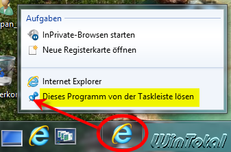 Da unter Windows 8 nun zweimal der Internet Explorer vorhanden ist, entfernen Sie den rechten Internet Explorer mit Rechtsklick „Dieses Programm von der Taskleiste lösen„.