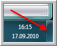 Das neue „Desktop anzeigen„-Symbol in Windows 7 und Windows 8 ist ganz rechts neben der Uhr, ein unscheinbares stehendes Rechteck.