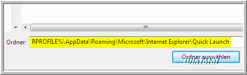 Dieser Ordner mit den 3 entsprechenden Verknüpfungen – „Desktop anzeigen“ – „Internet Explorer“ und „Zwischen Fenstern umschalten“ – existiert bereits, so dass der Quick Launch nur eingebunden werden muss.
