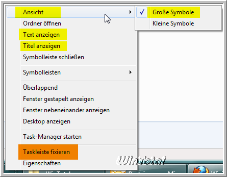 Zum Schluss fixiert man die Taskleiste mit Taskleiste fixieren wieder.