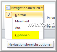 Dazu öffnen Sie im Menü „Ansicht“ die Rubrik „Layout“ und klicken auf den kleinen Pfeil von „Navigationsbereich“. Wählen Sie „Optionen…“ aus und danach klicken Sie auf den Button „Schriftart“. Hier können Sie Ihre gewünschten Schriftformatierungen einstellen. Standard von Outlook 2010 ist „Segoe UI“ mit einem Schriftgrad von „8“ oder „9“ Punkt.