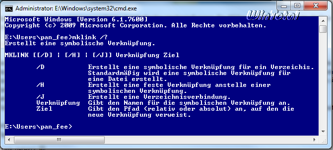 Man muss bei diesem Befehl den Laufwerksbuchstaben mit angeben, der in der Eingabeaufforderung [Umschalt]+[F10] mit dir angezeigt wurde – auch wenn der von den tatsächlichen Buchstaben abweicht, die Links sind nachher trotzdem korrekt (in den meisten Fällen C:\).