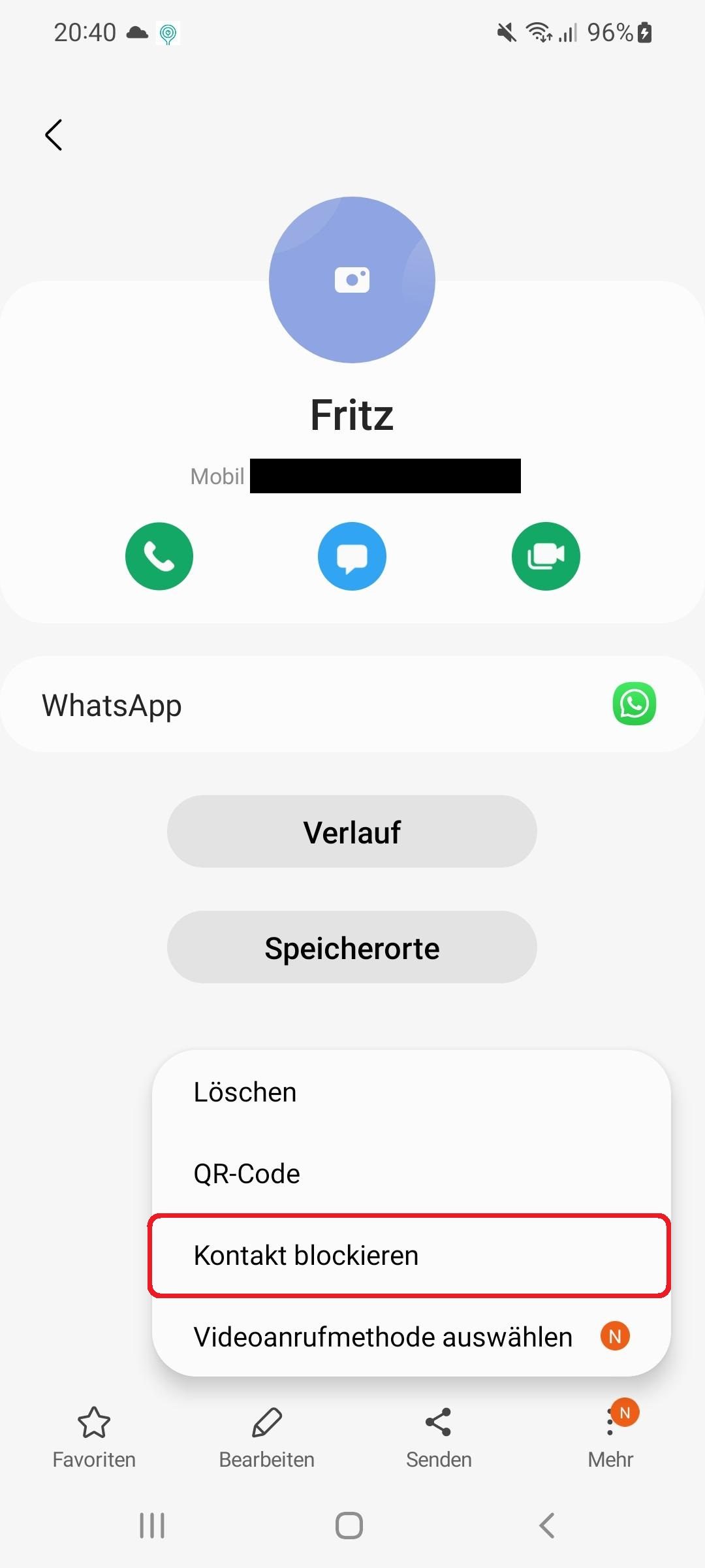 - Bestätigen Sie mit „Kontakt blockieren“.