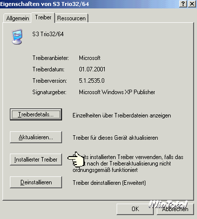 Vor jeder Installation eines neuen Treibers sichert Windows XP automatisch die Einstellungen vor der Veränderung.