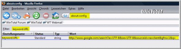 In Mozilla Firefox kann man die Suchmaschine unter about:config in der Adressleiste – im Filter: keyword.URL ändern von …