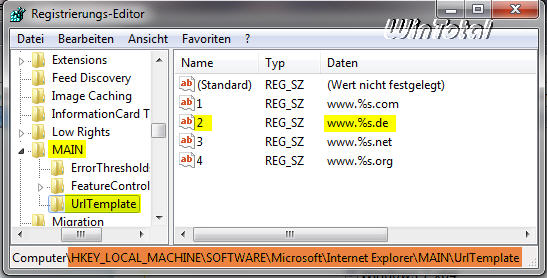 HKEY_LOCAL_MACHINE\Software\Microsoft\Internet Explorer\Main\URLTemplate