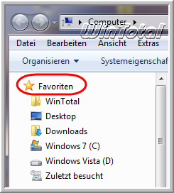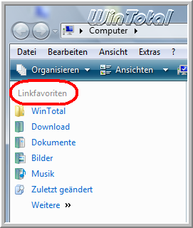 Windows Vista- und Windows 7/8-Benutzer dürfen die PlacesBar aber nicht mit den „Linkfavoriten“ bzw. „Favoriten“ verwechseln, welche „händisch“ angepasst werden können.