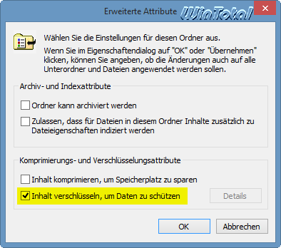 Ab Windows 2000 bietet die Option, dass Dateien oder Ordner verschlüsselt werden