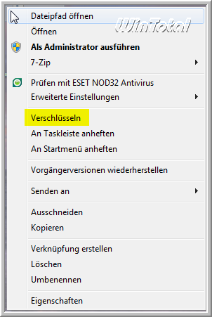 Unter Windows Vista, Windows 7 und Windows 8.0/8.1 ist eine Verschlüsselungsoption schon vorhanden.