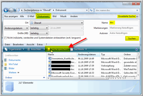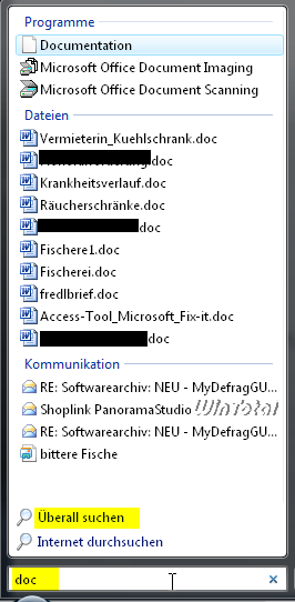 „Erweiterte Suche“ – Name -> doc – Button „Suchen“.