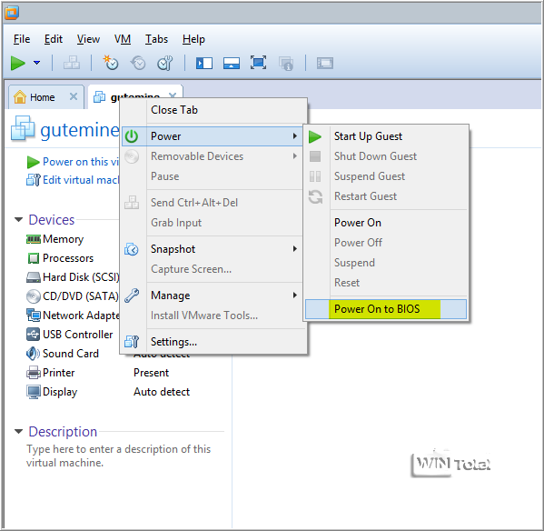Seit VMware Workstation 10 (und dem dazu gehörenden Player) ist es auch möglich, direkt ins BIOS zu booten.