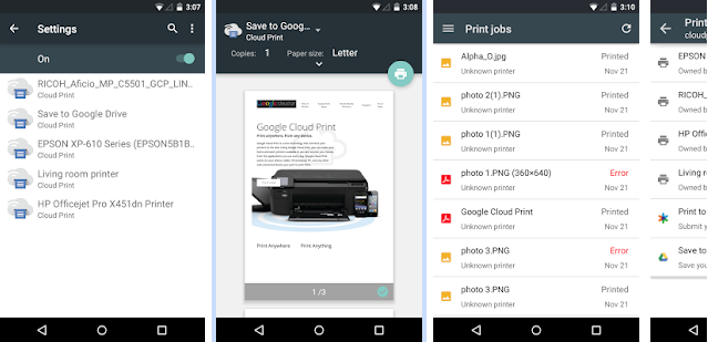 Um auf dem Drucker über Cloud Print später zu drucken, benötigen Sie unter Android noch die Cloud Print App aus dem Google Play Store, welche sich nach der Installation über die Geräteeinstellungen unter System bei „Drucken“ einbindet und Ihnen erlaubt, Dokumente auf jedem cloudfähigen Drucker ausdrucken, die Druckaufträge zu verwalten oder alte Druckaufträge einzusehen.