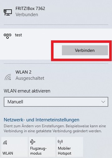 Um die Verbindung unter Windows 10 zu erstellen, führen Sie anschließend die folgenden Schritte aus: