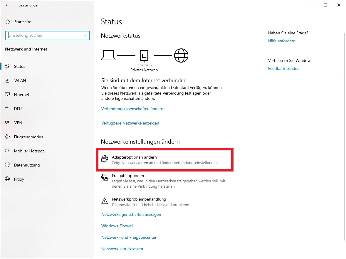 - Klicken Sie dazu mit der rechten Maustaste auf das Netzwerksymbol in der Taskleiste und wählen Sie „Netzwerk- und Freigabecenter -> Adapteroptionen ändern“ aus.