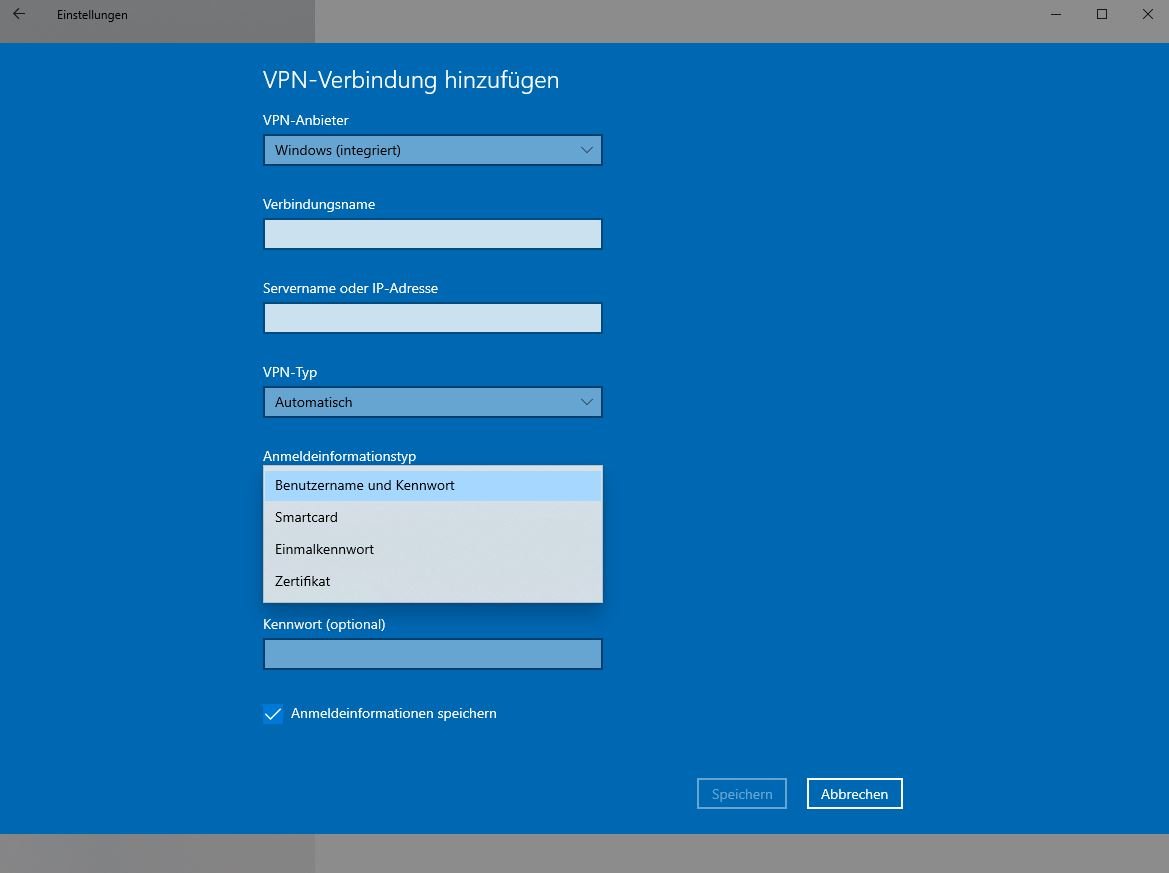 1. Windows 10 als VPN-Client nutzen
