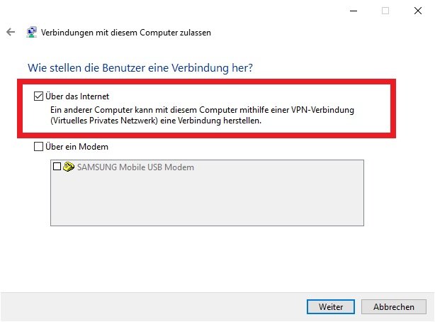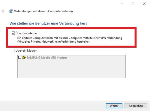 2. Windows 10 als VPN Server konfigurieren