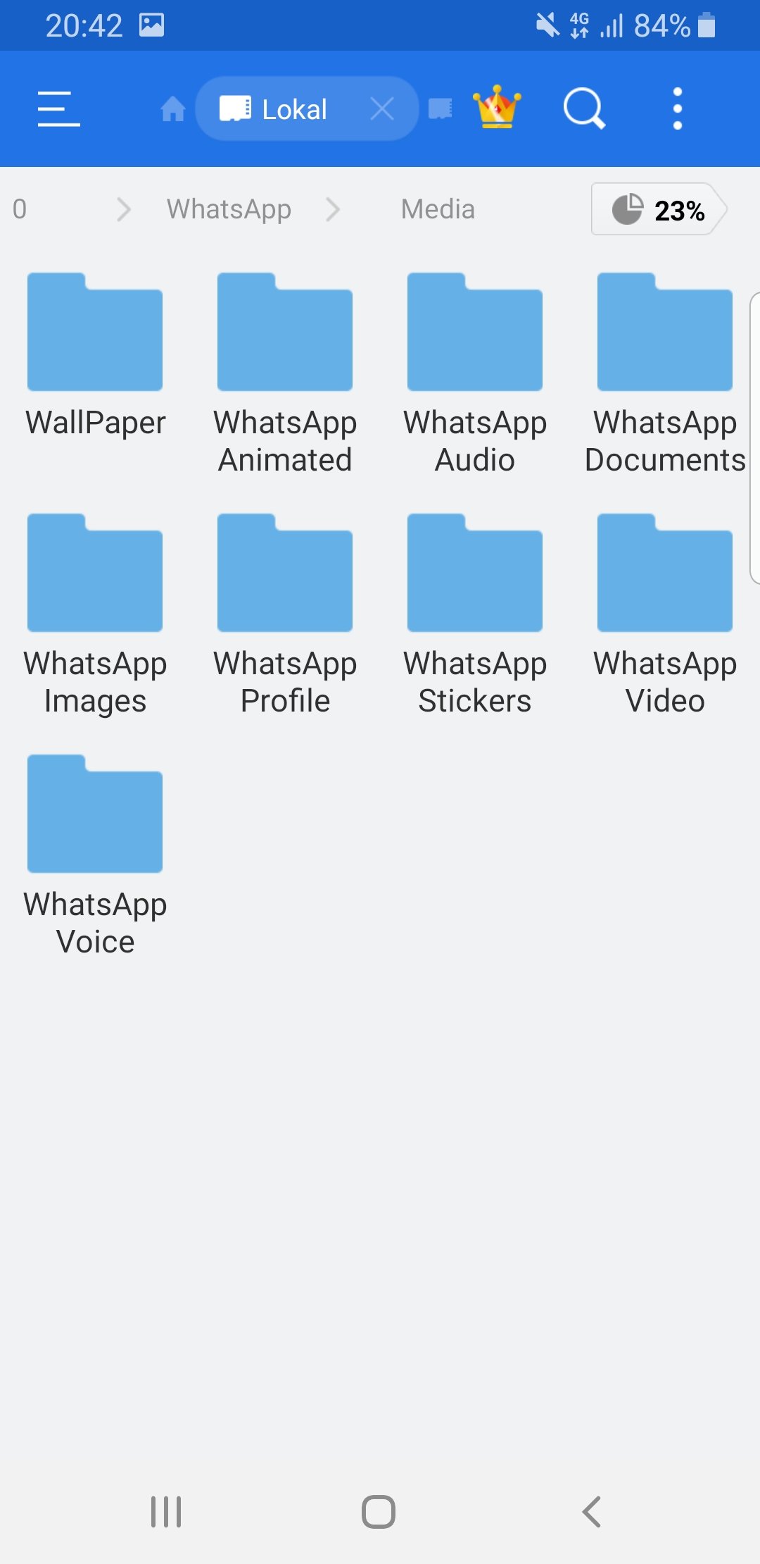 - Öffnen Sie den Dateimanager auf Ihrem Smartphone und wechseln Sie in den WhatsApp-Unterordner „Media“. Dieser enthält alle Medien, die Sie über WhatsApp erhalten haben.