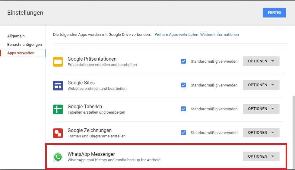 Wenn Sie Ihre Sicherung auf dem Google Drive abgelegt haben, müssen Sie zu Löschen die folgenden Schritte ausführen: