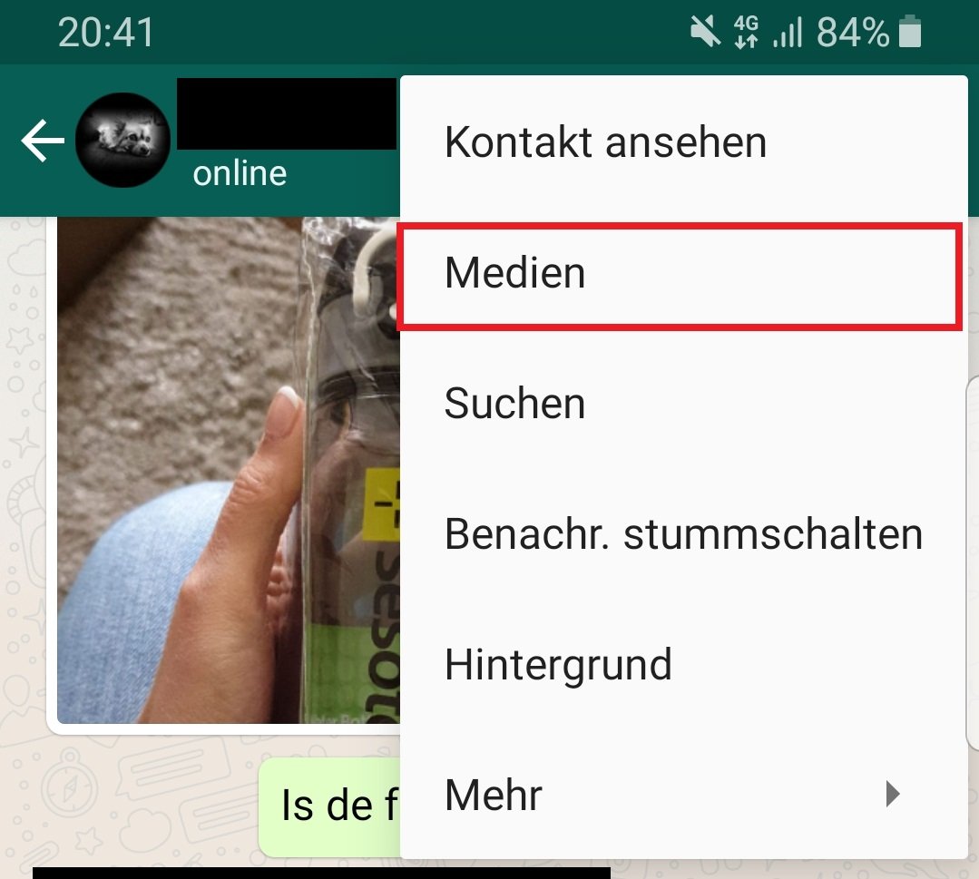 - Öffnen Sie dazu nacheinander jeden Chat und öffnen Sie im Menü den Unterpunkt „Medien“.