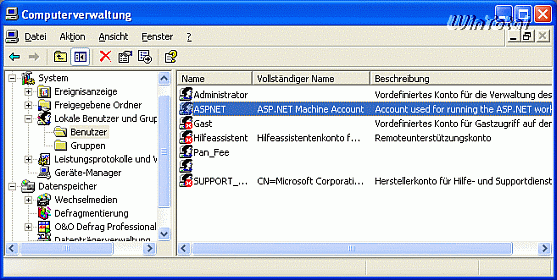 Wenn man ASP.NET Framework installiert hat, verschwindet die WillkommenSeite (Windows XP) oder die „automatische Anmeldung“ ist deaktiviert. Auch das Abmeldedialogfenster hat sich verändert. Um die „automatische Anmeldung“ wieder zu aktivieren, muss man den User-Account ASPNET deaktivieren, der mit der Installation von .NET erstellt wurde.