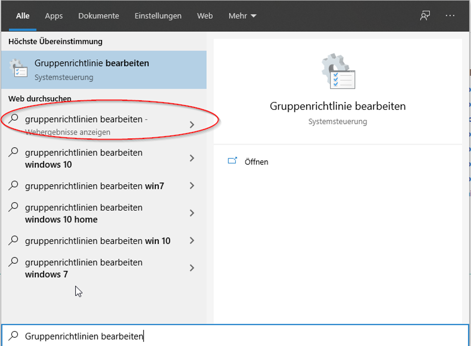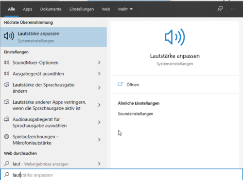 Die Suche berücksichtigt installierte Programme und Apps, Funktionen in der Systemsteuerung sowie die Einstellungen. Für wenig versierte Anwender bietet die Suche in Windows 10 damit die einfache Möglichkeit, eine bestimmte Funktion direkt aufzurufen, beispielsweise die Anpassung von Gruppenrichtlinien oder Lautstärke.