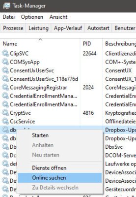 Der Task-Manager von Windows bietet auf der Registerkarte „Dienste“ eine Funktion „Online suchen“, welcher eine Suchanfrage nach dem Dienstnamen startet. Über die Trefferergebnisse sollten Sie einen Überblick bekommen, ob und wofür der Dienst notwendig ist.