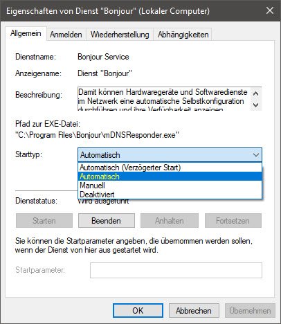 Dort können Sie das Startverhalten von jedem Dienst ändern. Standard ist meist die Einstellung „Automatisch“. Um einen Dienst abzuschalten, müssen Sie den Starttyp auf „manuell“ setzen. Ist der Dienst auf dem Starttyp deaktiviert, wird er vom System gar nicht mehr verwendet.