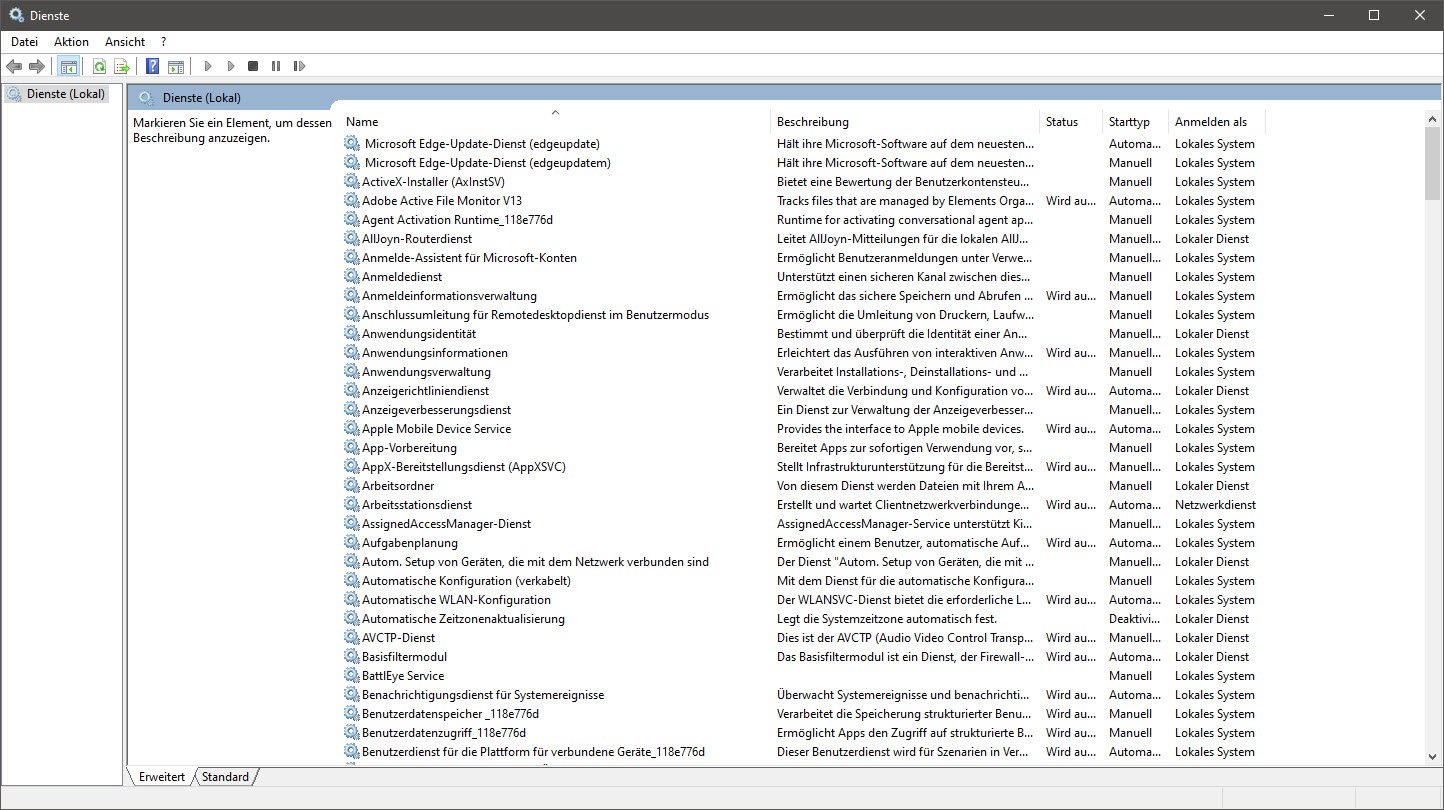 Ob ein Dienst wichtig oder unwichtig ist, können Sie über die Liste nicht erkennen. Für Windows selbst sind die meisten Dienste aber systemrelevant, wie beispielsweise: