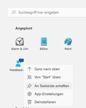 - Unter dem Treffer finden Sie rechts die Funktionen „An Start anheften“ oder „An Taskleiste anheften“.