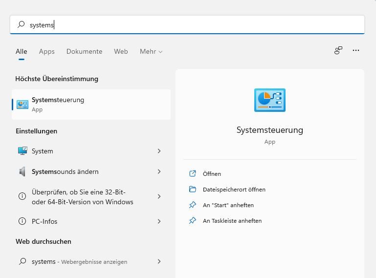 - Geben Sie in der Suche „Systemsteuerung“ ein.