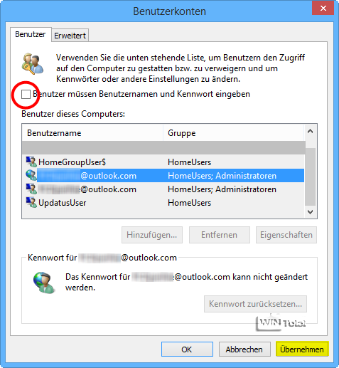 1. Automatisches Windows-Anmeldung bis Windows 8
