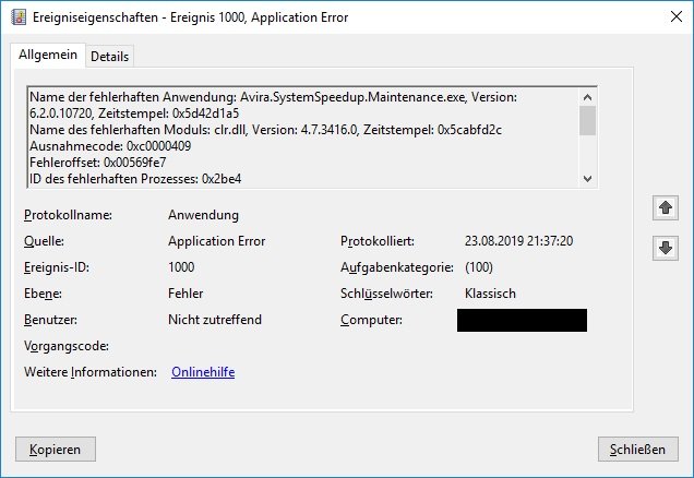 Tipp: Auf der Internetseite eventid.net können Sie die Quelle und Ereignis-ID eingeben und erhalten im Anschluss Informationen, die bei der Fehlersuche hilfreich sind.